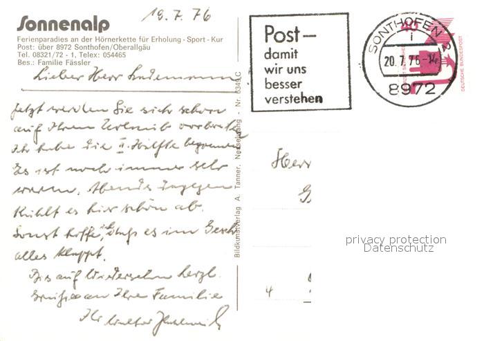 73023820 alte Postkarte Sonthofen Oberallgaeu Sonnenalp Resort postalisch gelaufen Erhaltung siehe scans [PaolaD17] KatCode: 11110009780139