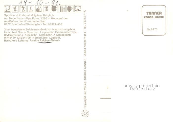 73312957 Sonthofen Oberallgaeu Sport Kurhotel Allgaeuer Berghof postalisch nicht gelaufen Erhaltung siehe scans [KathaD81] KatCode: 11110009780139