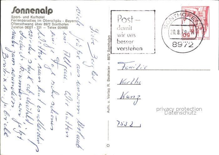 72568519 alte Postkarte Sonthofen Oberallgaeu Sport Kurhotel Sonnenalp Ofterschwang postalisch gelaufen Erhaltung siehe scans [KathaD79] KatCode: 11110009780139