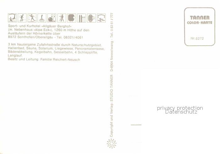 72830604 Sonthofen Oberallgaeu Sport und Kurhotel Allgaeuer Berghof postalisch nicht gelaufen Erhaltung siehe scans [FriedD77] KatCode: 11110009780139