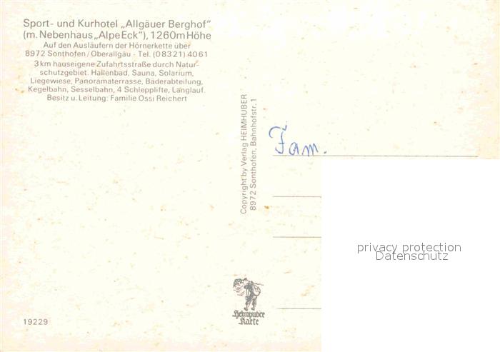 72742287 Sonthofen Oberallgaeu Sport und Kurhotel Allgaeuer Berghof Allgaeuer Alpen postalisch nicht gelaufen Erhaltung siehe scans [FriedD77] KatCode: 11110009780139