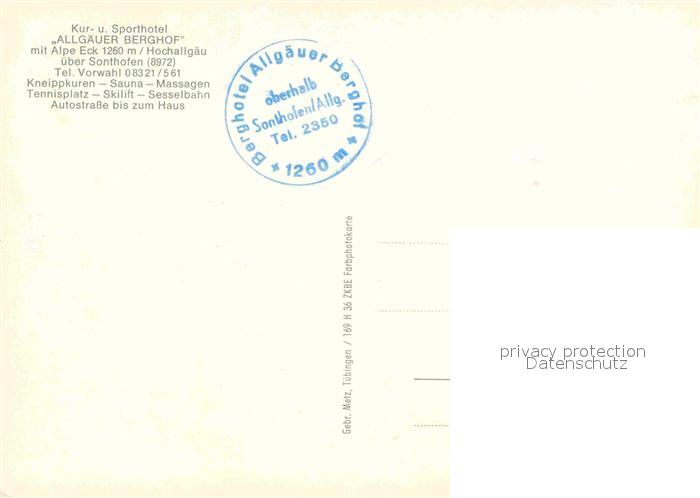72896754 Sonthofen Oberallgaeu Sporthotel Allgaeuer Berghof postalisch nicht gelaufen Erhaltung siehe scans [AndreD76] KatCode: 11110009780139