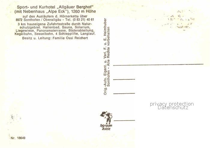 72668399 Sonthofen Oberallgaeu Sporthotel Allgaeuer Berghof postalisch nicht gelaufen Erhaltung siehe scans [AndreD76] KatCode: 11110009780139