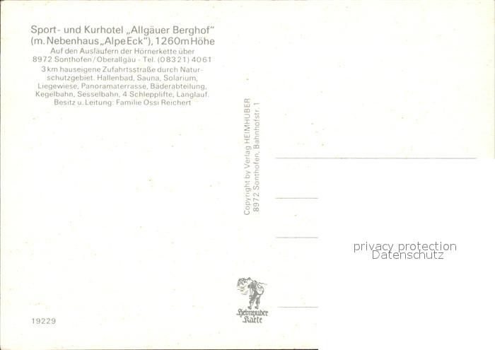 72476611 Sonthofen Oberallgaeu Sporthotel Allgaeuer Berghof Alpe Eck postalisch nicht gelaufen Erhaltung siehe scans KatCode: 11110009780139