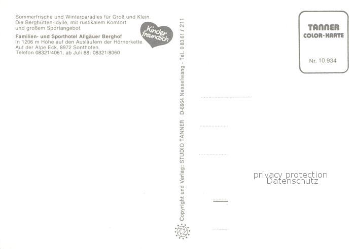 73175757 Sonthofen Oberallgaeu Sporthotel Allgaeuer Berghof postalisch nicht gelaufen Erhaltung siehe scans [NatalD47] KatCode: 11110009780139