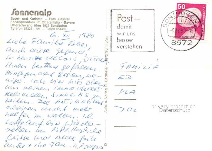 72683982 alte Postkarte Sonthofen Oberallgaeu Sporthotel Sonnenalp postalisch gelaufen Erhaltung siehe scans [AndreD76] KatCode: 11110009780139