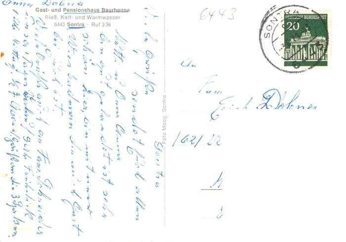 73870268 alte Postkarte Sontra Gasthaus Baurhenne Gastraeume postalisch gelaufen Erhaltung siehe scans [FriedD77] KatCode: 11110006636011