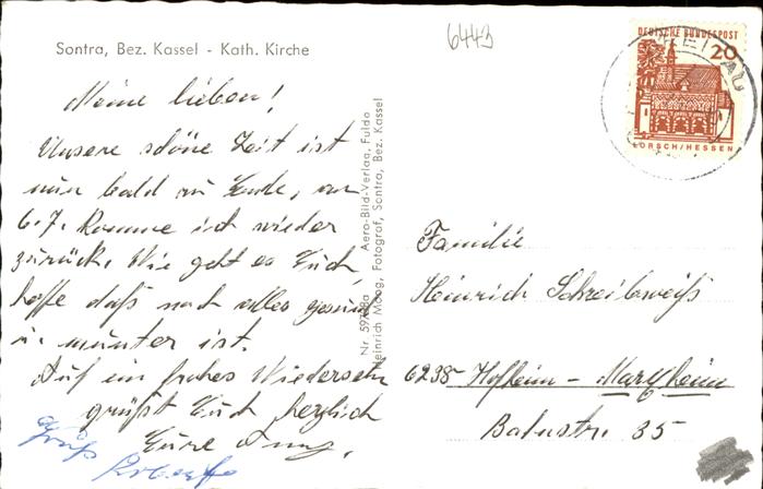 41255917 Sontra Werra-Meissner-Kreis Hessen Kath. Kirche postalisch gelaufen gute Erhaltung Alte Ansichtskarte Postkarte alte Postkarte Stef Katcode 11110006636011