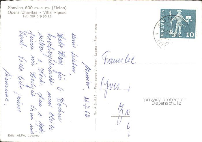 11655203 alte Postkarte Sonvico Opera Charitas Villa Riposo postalisch gelaufen Erhaltung siehe scans KatCode: 11470210660226