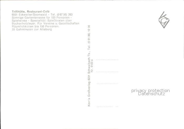 72118921 Soonwald Restaurant Cafe Trifthuette Aussichtsturm Alteburg Gastraum Spiessbraten postalisch nicht gelaufen Erhaltung siehe scans KatCode: 11110007133023