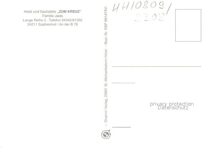 73642717 Sophienhof Hotel Gaststaette Zum Kreuz postalisch nicht gelaufen Erhaltung siehe scans [FriedD77] KatCode: 11110009278140