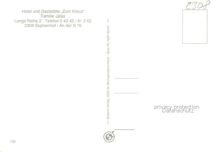 73757807 Sophienhof Hotel-Gaststaette Zum Kreuz postalisch nicht gelaufen Erhaltung siehe scans [LiesaD40] KatCode: 11110009278140