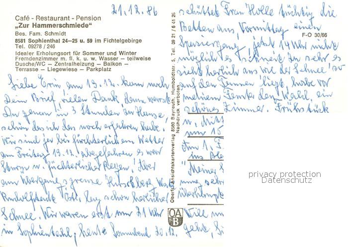 73650808 Sophienthal Oberfranken Cafe Restaurant Pension Zur Hammerschmiede Gaststube Panorama Garten postalisch nicht gelaufen Erhaltung siehe scans [WerneD78] KatCode: 11110009472199