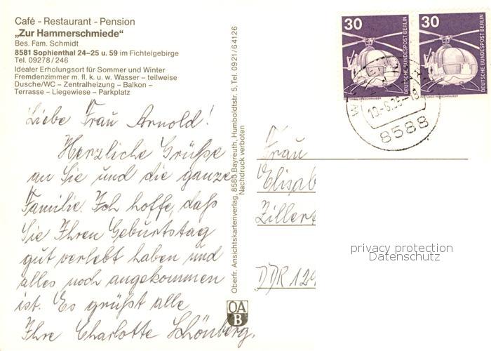 73843992 alte Postkarte Sophienthal Oberfranken Cafe Restaurant Pension Zur Hammerschmiede postalisch gelaufen Erhaltung siehe scans [WerneD78] KatCode: 11110009472199