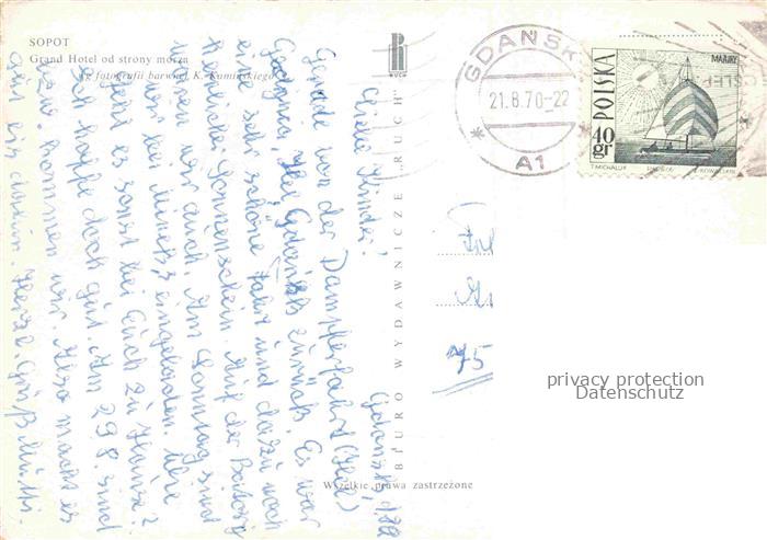 74088037 old postcard Sopot Zoppot PL Grand Hotel Strand postalisch gelaufen Erhaltung siehe scans [WerneD78] KatCode: 11410