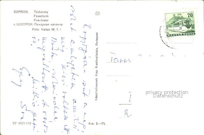 old postcard Sopron Oedenburg Tueztorony Feuerturm postalisch gelaufen Erhaltung siehe scans