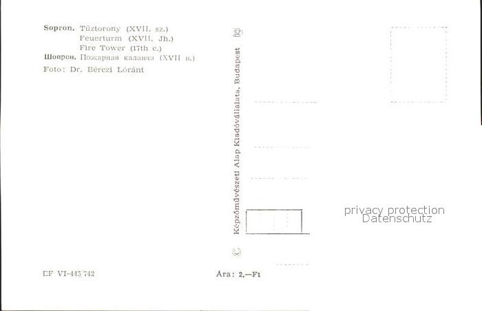 Sopron Oedenburg Tueztorony Feuerturm XVII Jhdt. postalisch nicht gelaufen Erhaltung siehe scans