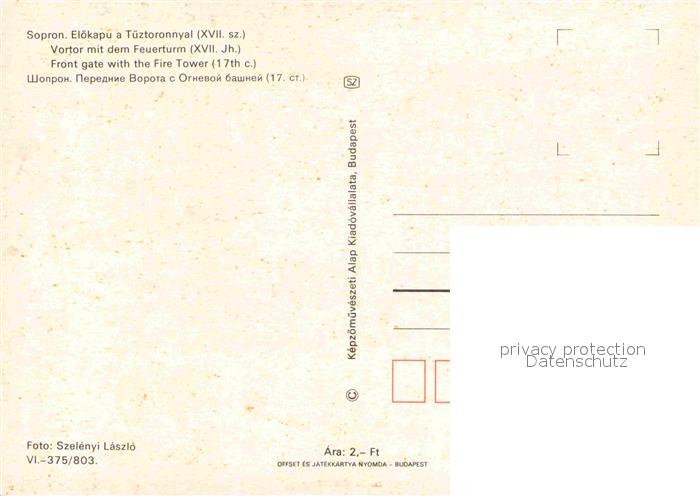 Sopron Oedenburg Vortor mit dem Feuerturm postalisch nicht gelaufen Erhaltung siehe scans [WerneD78]