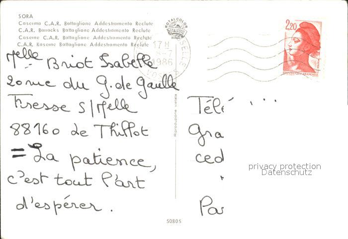 old postcard Sora Italia Caserma CAR postalisch gelaufen Erhaltung siehe scans