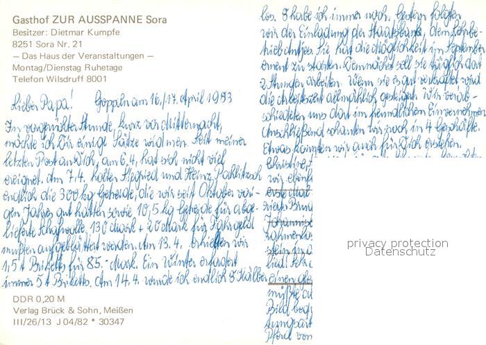 73658315 Sora Wilthen Gasthof Zur Ausspanne Haus der Veranstaltungen postalisch nicht gelaufen Erhaltung siehe scans [FriedD77] KatCode: 11110014272390