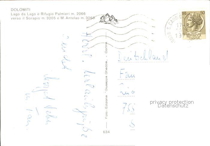 old postcard Sorapiss Lago di Lago Rifugio Palmieri M Antelao postalisch gelaufen Erhaltung siehe scans