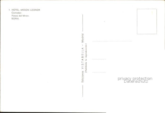 Soria Castilla Hotel Meson Leonor Comedor Paseo del Miron postalisch nicht gelaufen