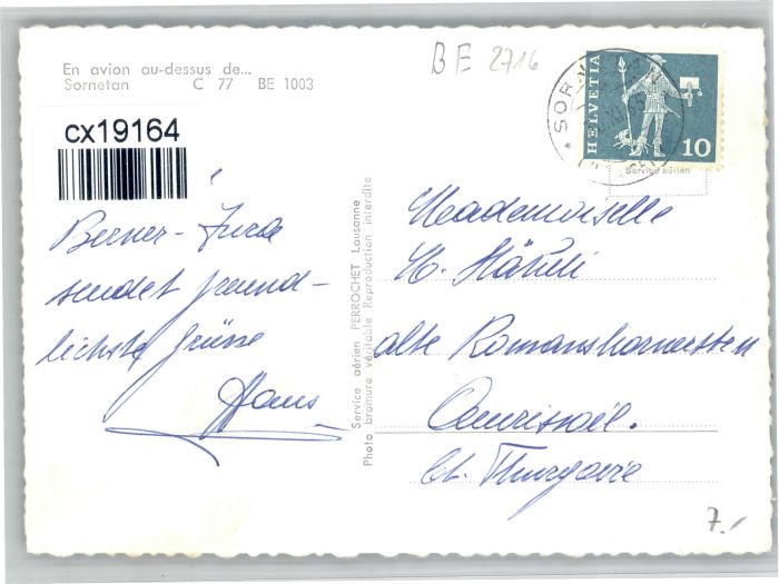 10723086 alte Postkarte Sornetan Fliegeraufnahme postalisch gelaufen KatCode: 11470060195466