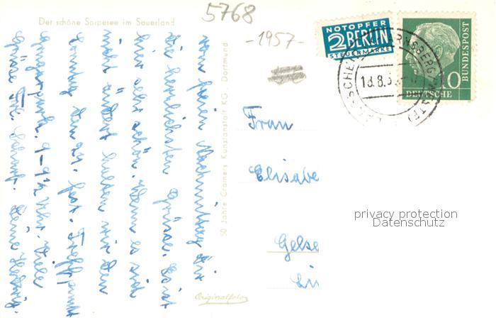 73695327 alte Postkarte Sorpesee Sauerland Fliegeraufnahme postalisch gelaufen Erhaltung siehe scans [WerneD78] KatCode: 11110005958044