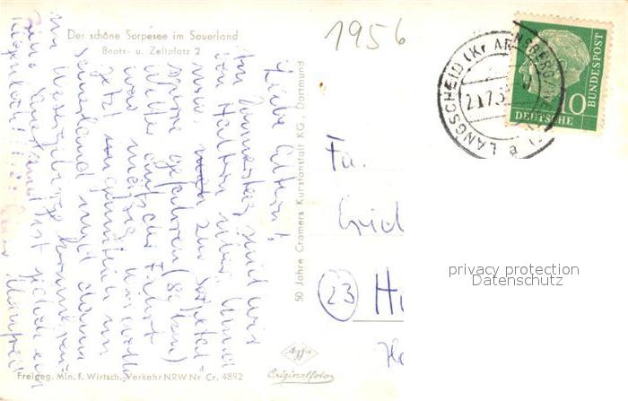 73283092 alte Postkarte Sorpesee Sauerland Fliegeraufnahme Zeltplatz postalisch gelaufen Erhaltung siehe scans [NatalD47] KatCode: 11110005958044