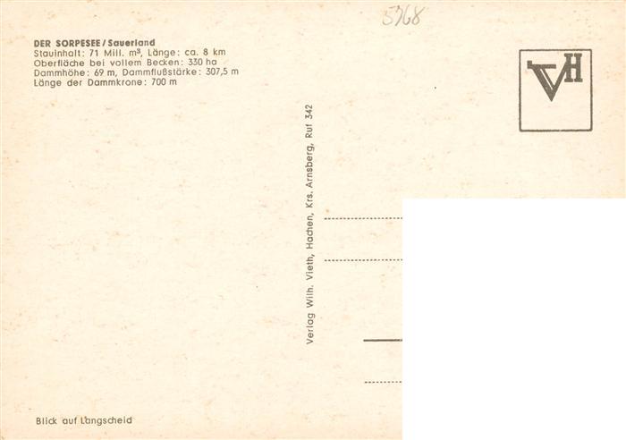 73943297 Sorpesee Sauerland Panorama postalisch nicht gelaufen Erhaltung siehe scans [WerneD78] KatCode: 11110005958044