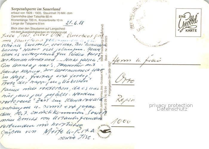 73618169 alte Postkarte Sorpetalsperre Fliegeraufnahme postalisch gelaufen Erhaltung siehe scans [WerneD78] KatCode: 11110005958044