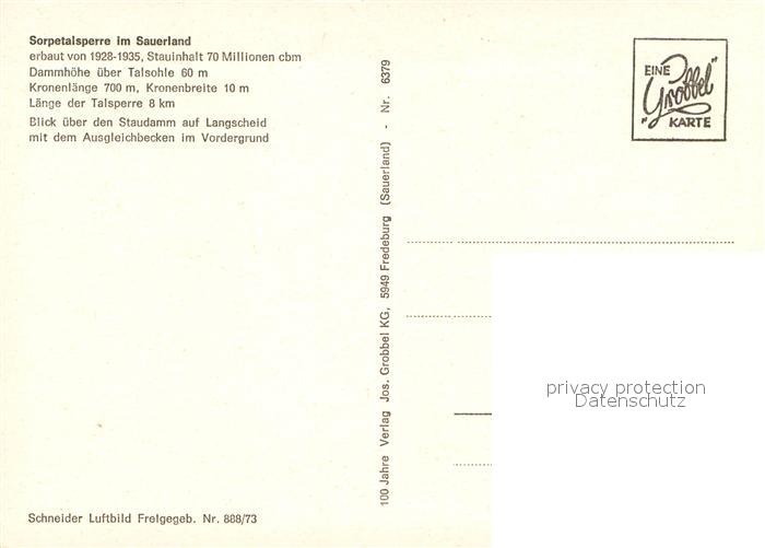 72961773 Sorpetalsperre Fliegeraufnahme postalisch nicht gelaufen Erhaltung siehe scans [LiesaD40] KatCode: 11110005958044