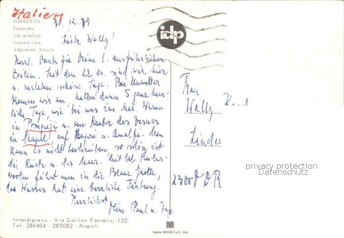 old postcard Sorrento Campania Gesamtansicht postalisch gelaufen Erhaltung siehe scans