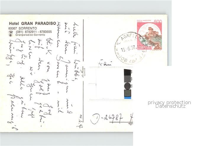 old postcard Sorrento Campania Hotel Gran Paradiso postalisch gelaufen Erhaltung siehe scans