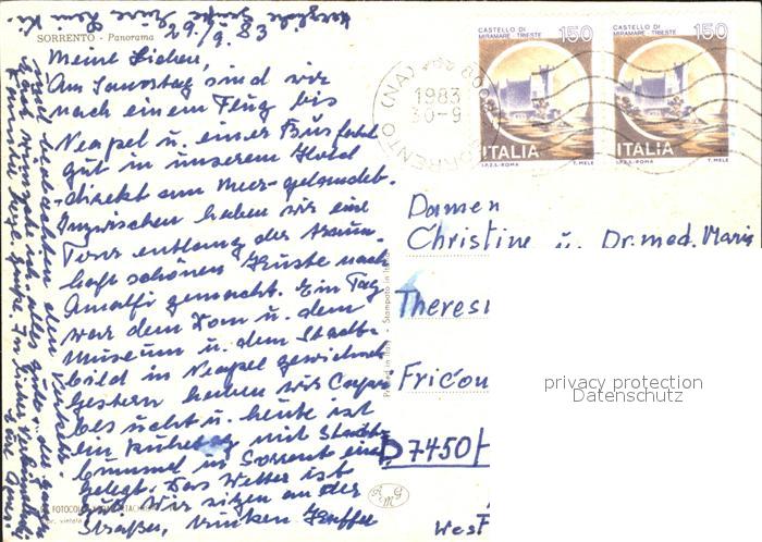 old postcard Sorrento Campania K?ste Meer postalisch gelaufen Erhaltung siehe scans