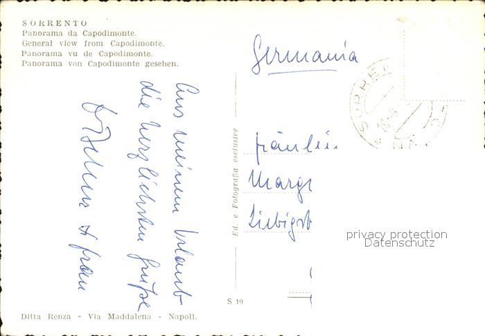 old postcard Sorrento Campania Panorama Blick von Capodimonte postalisch gelaufen Erhaltung siehe scans