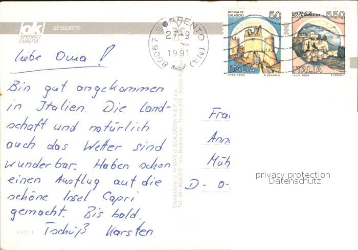 old postcard Sorrento Campania Panorama Hafenpartien Trachtengruppe Pferdekutsche postalisch gelaufen Erhaltung siehe scans