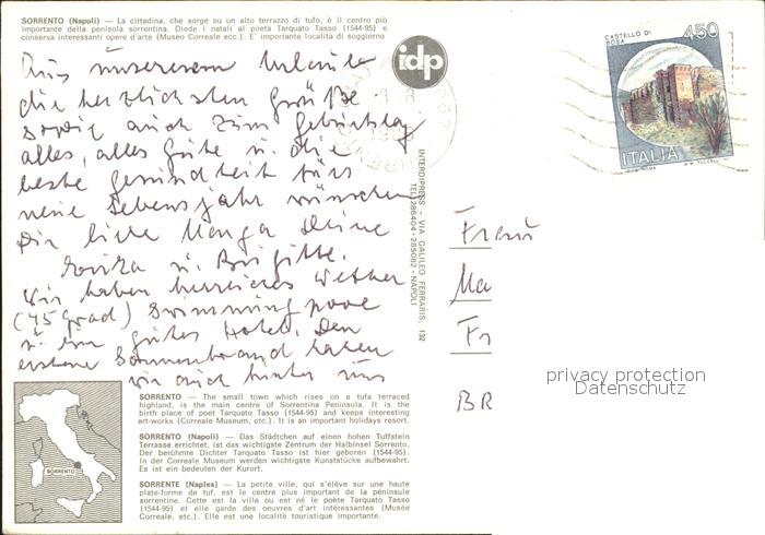 old postcard Sorrento Campania Panorama Kueste postalisch gelaufen Erhaltung siehe scans