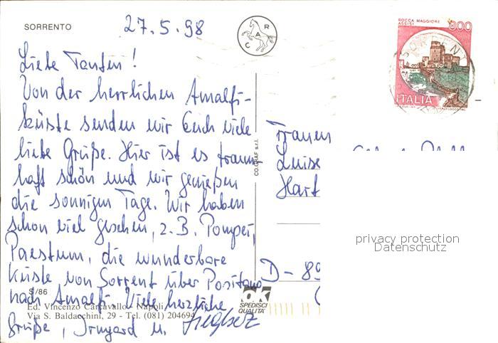 old postcard Sorrento Campania Panorama Kueste Hafen Nachtaufnahme postalisch gelaufen Erhaltung siehe scans