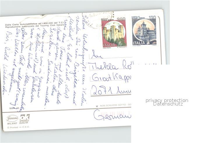 old postcard Sorrento Campania Panorama Kueste Strassenkarte Carta Automobilistica postalisch gelaufen Erhaltung siehe scans