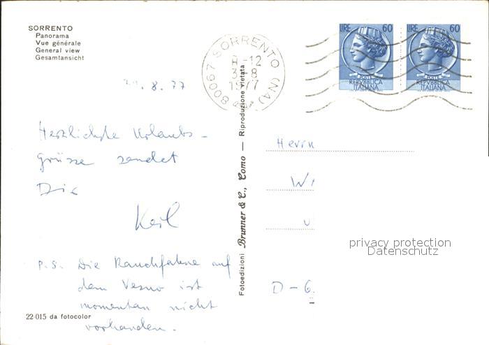 old postcard Sorrento Campania Panorama Vulkan postalisch gelaufen Erhaltung siehe scans
