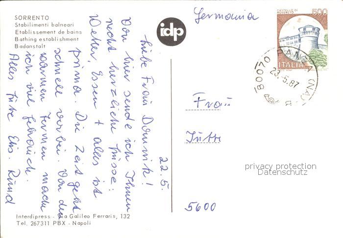 old postcard Sorrento Campania Stabilimenti balneari Badestrand Kueste postalisch gelaufen Erhaltung siehe scans