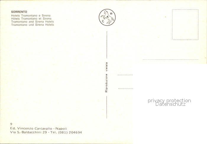 Sorrento Campania Tramontano und Sirena Hotels postalisch nicht gelaufen Erhaltung siehe scans [WerneD78 kt117box]