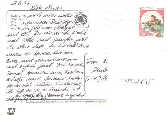 old postcard Sorrento Campania Veduta aereo postalisch gelaufen Erhaltung siehe scans
