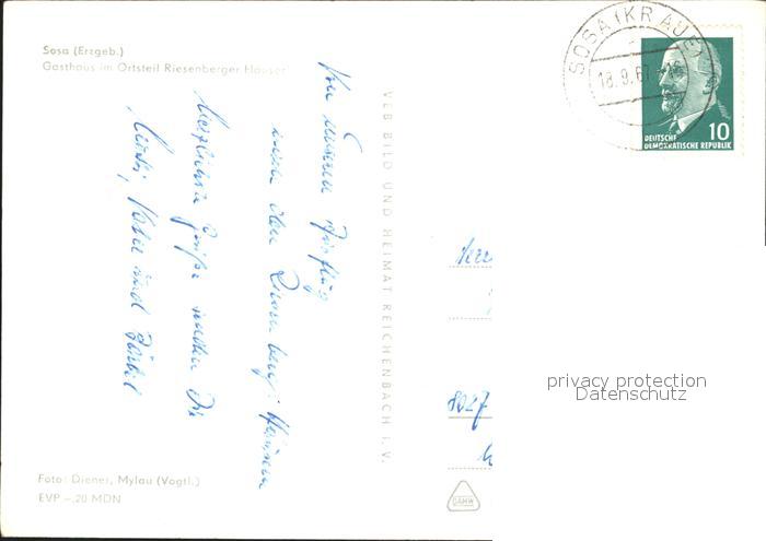 71989805 alte Postkarte Sosa Erzgebirge Gasthaus Ortsteil Riesenberger Haeuser postalisch gelaufen Erhaltung siehe scans KatCode: 11110014191310