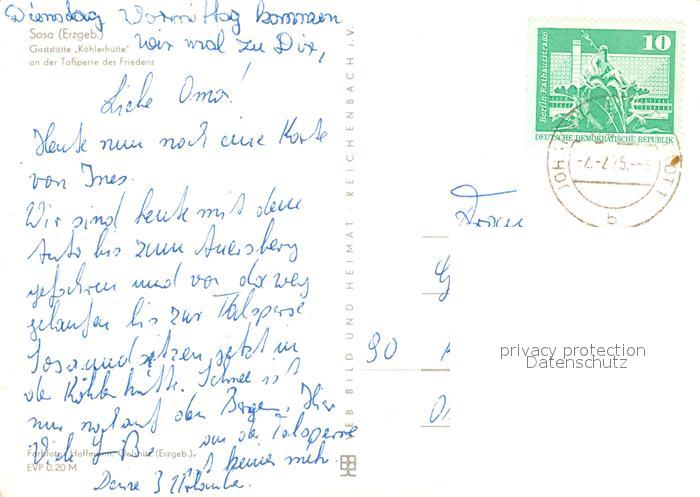 73104979 alte Postkarte Sosa Erzgebirge Gaststaette Koehlerhuette postalisch gelaufen Erhaltung siehe scans [WerneD78] KatCode: 11110014191310