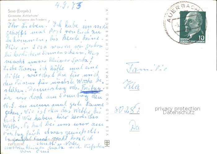 72354870 alte Postkarte Sosa Erzgebirge Gaststaette Koehlerhuette Talsperre des Friedens postalisch gelaufen Erhaltung siehe scans KatCode: 11110014191310