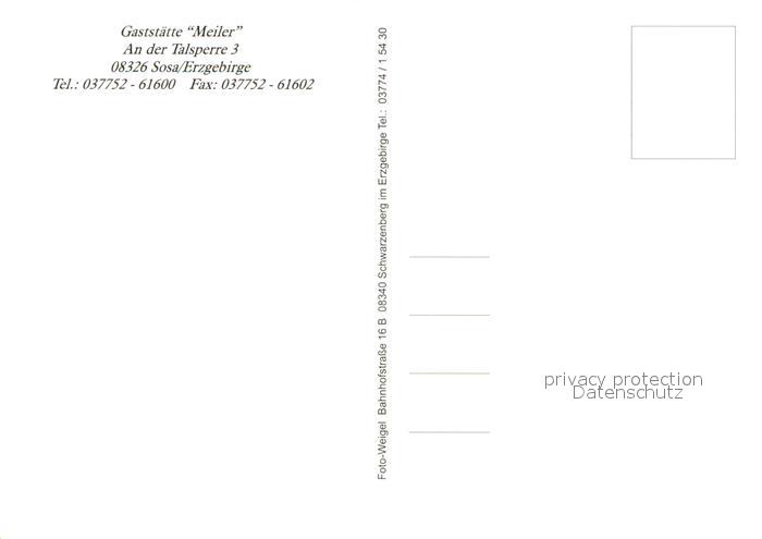 73657682 Sosa Erzgebirge Gaststaette Meiler an der Talsperre Landschaftspanorama postalisch nicht gelaufen Erhaltung siehe scans [FriedD77] KatCode: 11110014191310
