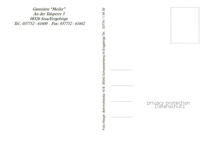 73657683 Sosa Erzgebirge Gaststaette Meiler an der Talsperre postalisch nicht gelaufen Erhaltung siehe scans [FriedD77] KatCode: 11110014191310