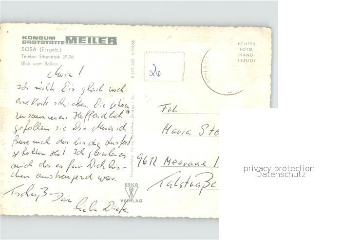 71900521 alte Postkarte Sosa Erzgebirge Konsum Gasstaette Meiler postalisch gelaufen Erhaltung siehe scans KatCode: 11110014191310
